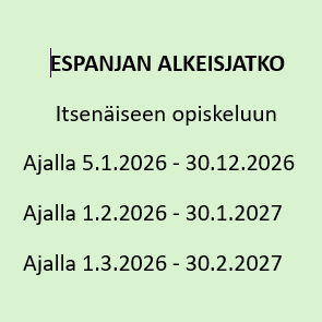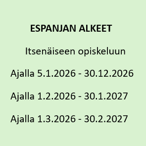 Tarkemmat tiedot kaikista espanjan kursseistamme löydät tämän sivun alaosasta.